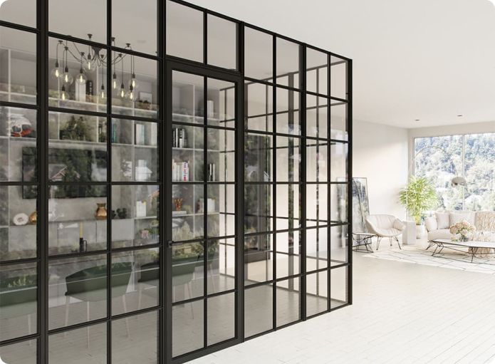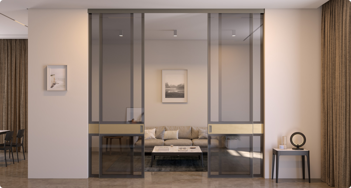 Такие конструкции не мешают свету свободно «путешествовать» между комнатами и обеспечивают полноценный визуальный обзор, - популярный выбор для гостиной, столовой, кухни, холла. Наша компания изготавливает раздвижные перегородки индивидуально под ваш проем, окрашиваем в любой цвет по палитрам RAL и NCS.