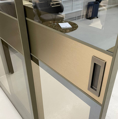 Универсальность дизайна: Аллюминиевые перегородки могут быть легко интегрированы в любой интерьер благодаря разнообразию цветовых решений и текстур. Они позволяют создавать эстетически привлекательные и функциональные рабочие пространства.