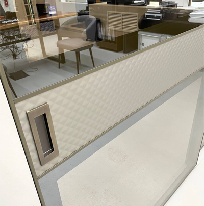 Фигурные створки перегородок Art выполнены из МДФ с итальянским матовым покрытием Soft Touch. Сверхпрочный лак компании MILESI со специальными присадками, обеспечивающими защиту от изменения цвета, растрескивания и отслоения. Особенностью откатной системы перегородок Art является подвесной тип крепления.