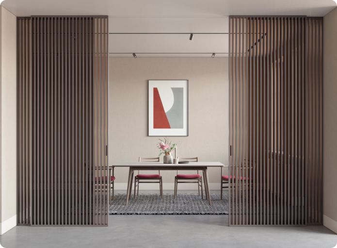 – это гармоничный союз изящных светопрозрачных вставок и фигурных створок с их шармом и надёжностью. Управляя освещением, выгодно расставляя акценты, видоизменяя конфигурации функциональных зон, межкомнатные перегородки Art совершили настоящий переворот в области организации внутренних территорий, позволив выйти за пределы, заданные архитектурой зданий.